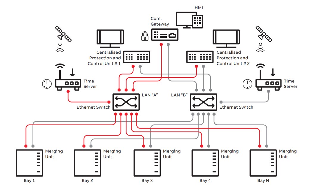 Another approach to redundancy involves combining simplified conventional relay protection with centralized protection and control (CPC). In these hybrid systems, intelligent merging units play an important role by providing backup protective functions. These merging units essentially act as microprocessor relays capable of communicating with the centralized protection unit.