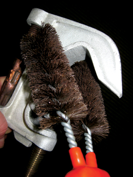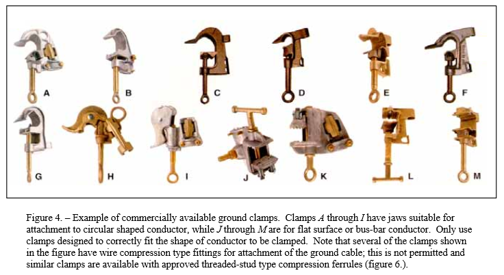 To ensure the lowest possible exposure voltage, grounding connections must be clean. Surfaces of grounding hardware may be corroded or contaminated and should be cleaned by wire brushing before the grounding clamps are installed.