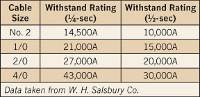 Both the current magnitude and duration (clearing) time must be established to determine cable size (ampacity) and allowable cable length. Determine the maximum fault current of the supply transformer with the following formula: