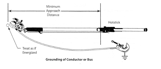 Voltage rated insulated gloves should be used whether applying grounds with a hot stick or by hand. Remember, the bus is considered energized from a safety standpoint until properly grounded.