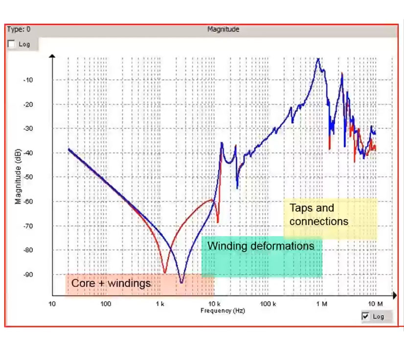 During the DFR test, the insulation response is measured at different frequencies, typically ranging from a few Hz to several kHz. The measurements are then compared to reference measurements or established standards to evaluate the insulation condition. The test results can provide information about the presence and severity of moisture within the insulation system.