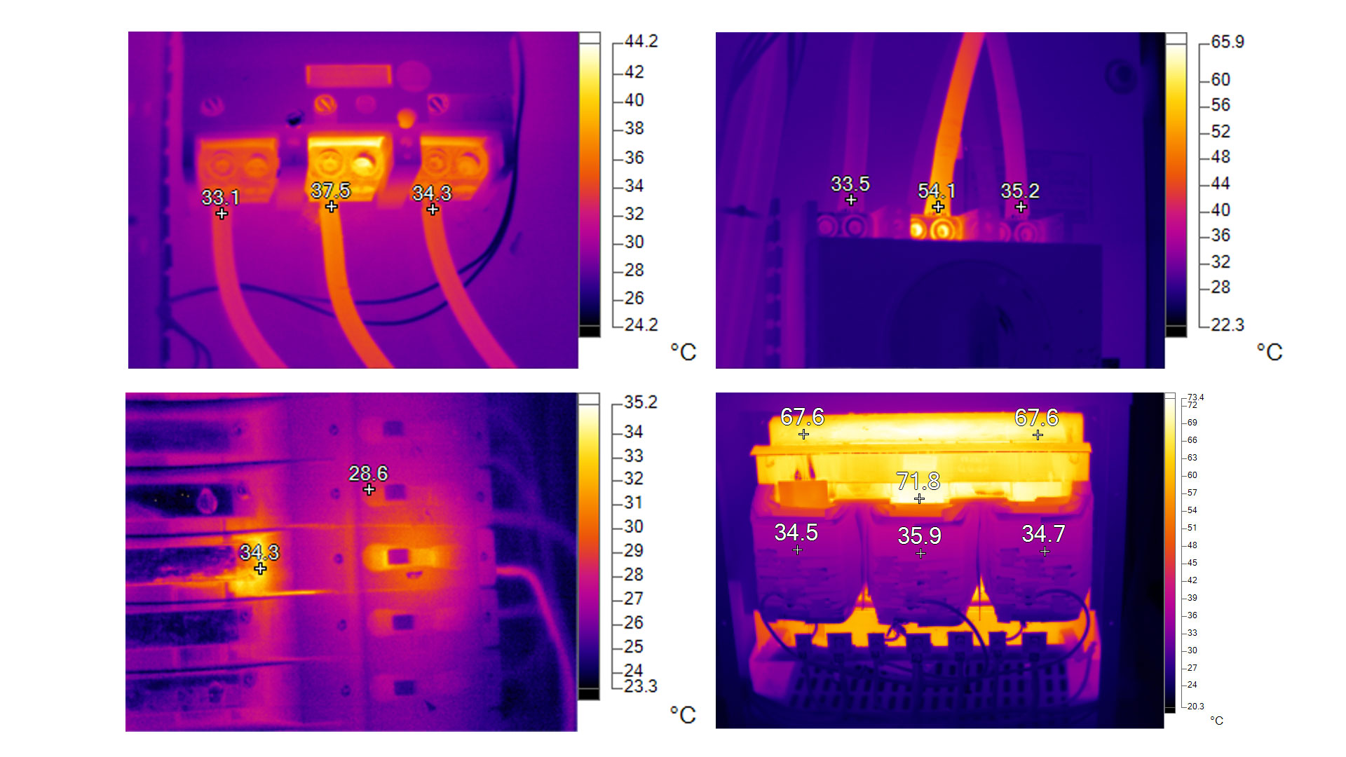Thermographers use infrared (IR) cameras to capture thermal images of electrical components as part of routine maintenance programs. These images reveal abnormal heat patterns and localized hot spots that may indicate underlying deficiencies requiring further investigation before they develop into a fault.